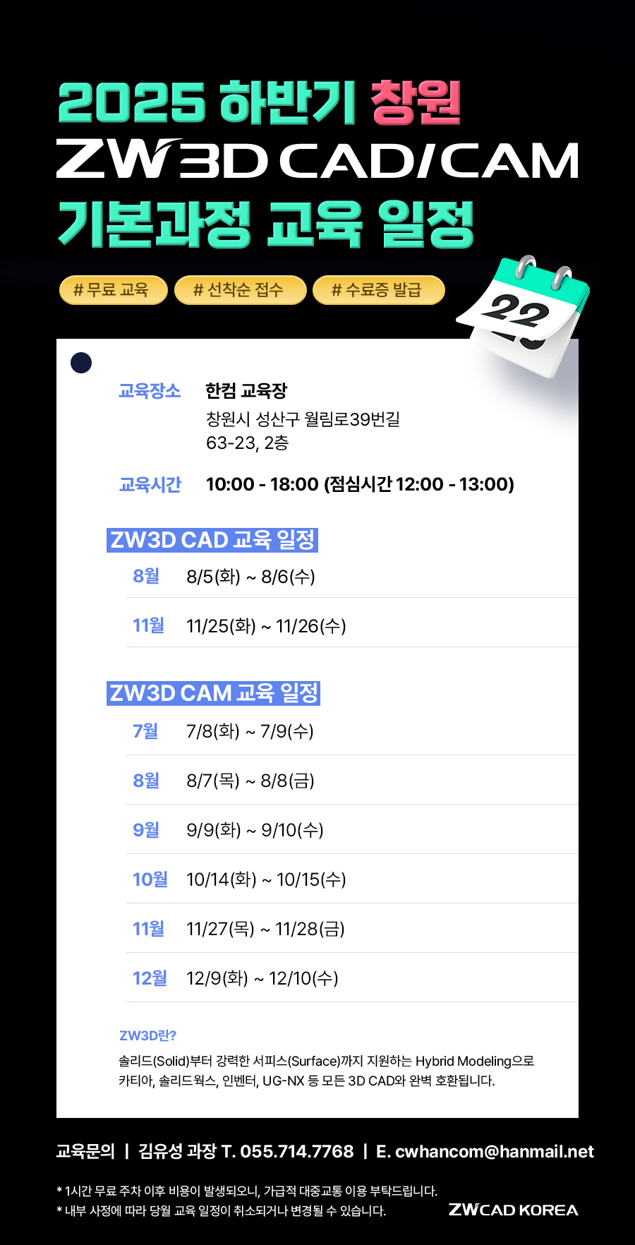 ☆[ZW3D 부산·창원] 2025년도 하반기 ZW3D CAD/CAM 기본 과정 교육 일정